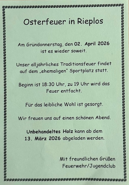 Wer weiteres Material zur Historie oder zum Rieploser Dorfleben hat, kann es uns gerne zukommen lassen.