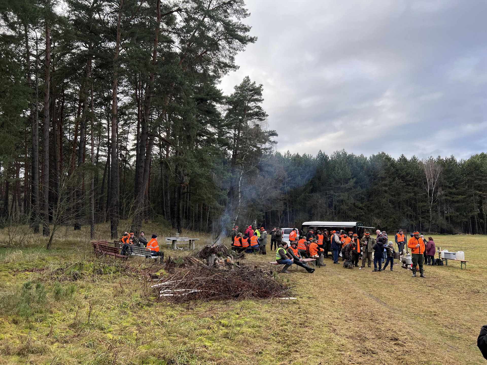 Die Treiber verteilten sich und durchstreiften den Wald auf einer Strecke von ca.11 Kilometern. Einige Tiere, z.B. Hasen und auch ein Wildschwein wurden gesichtet. Doch zur Strecke gebracht wurde kein Tier. Das tat der Stimmung aber keinen Abbruch, denn die Catering Strecke war um so besser. Familie Voss hatte einen tollen Job gemacht und allen den Tag verschönert.
