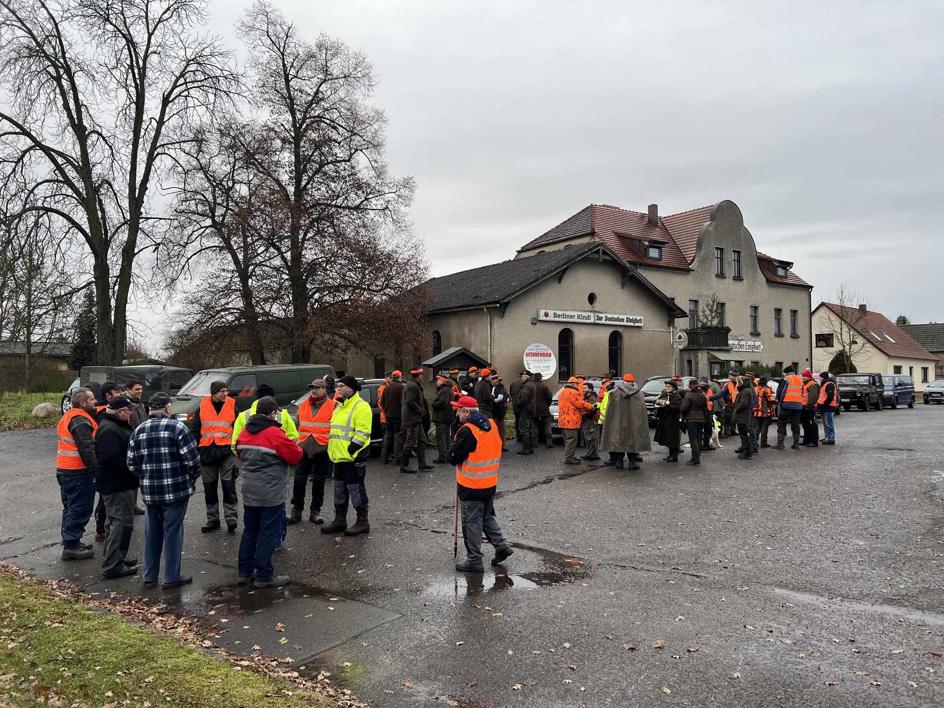 Nach längerer Pause fand in Riepos dieses Jahr wieder eine Treib - bzw. Drückjagd statt. Viele Treiber und Jäger trafen sich gegen 09:00Uhr vor der Gaststätte "Zur Deutschen Einigkeit" um die Jagd zu Eröffnen und zuvor die Einweisung zu erhalten.