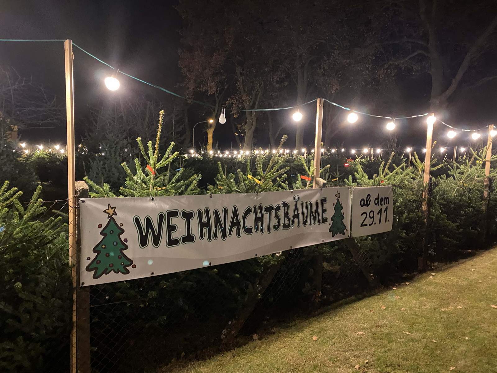 Es stehen viele verschiedene Nordmanntannen zum Verkauf.